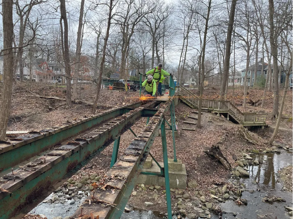 then demolished a 100-foot-long pedestrian bridge as